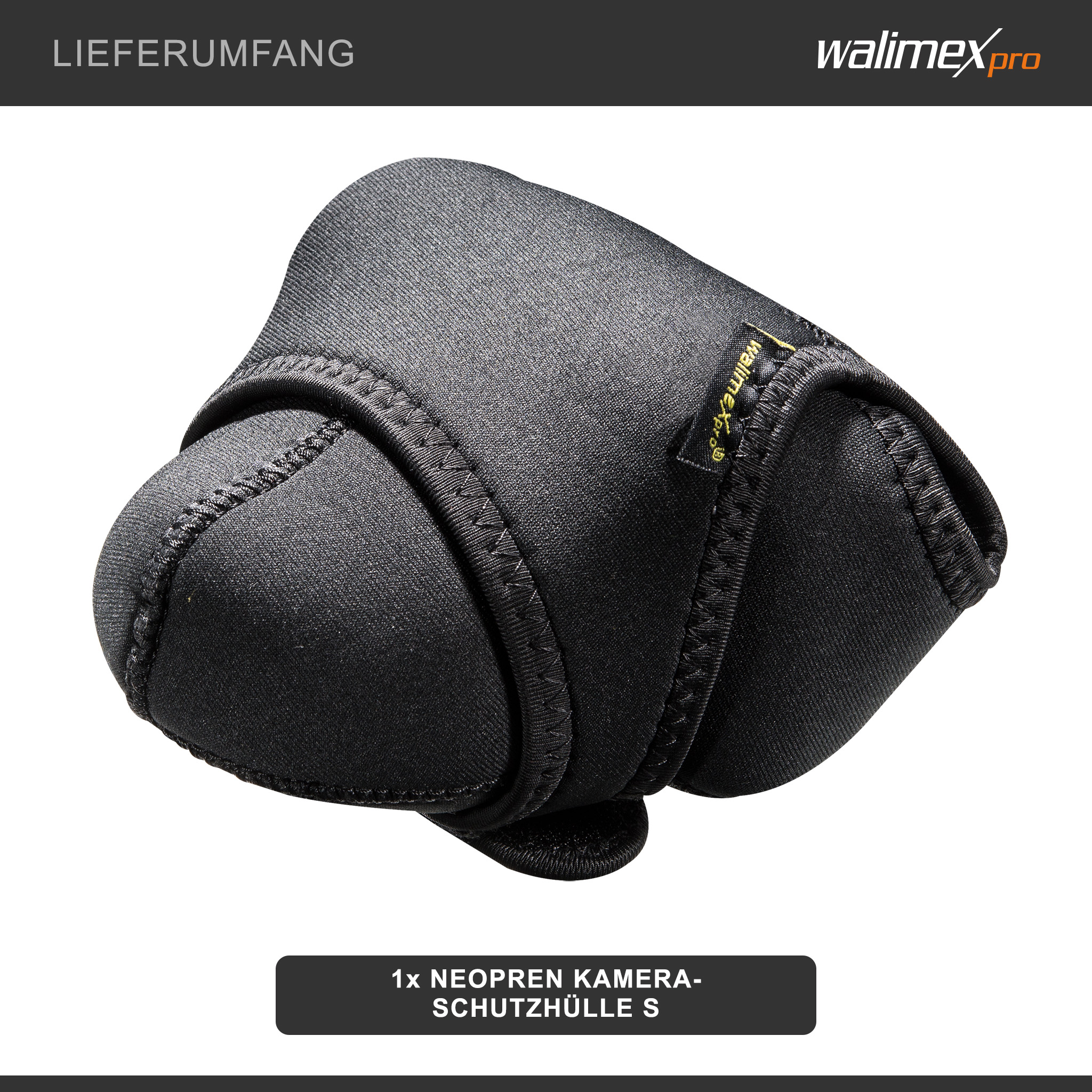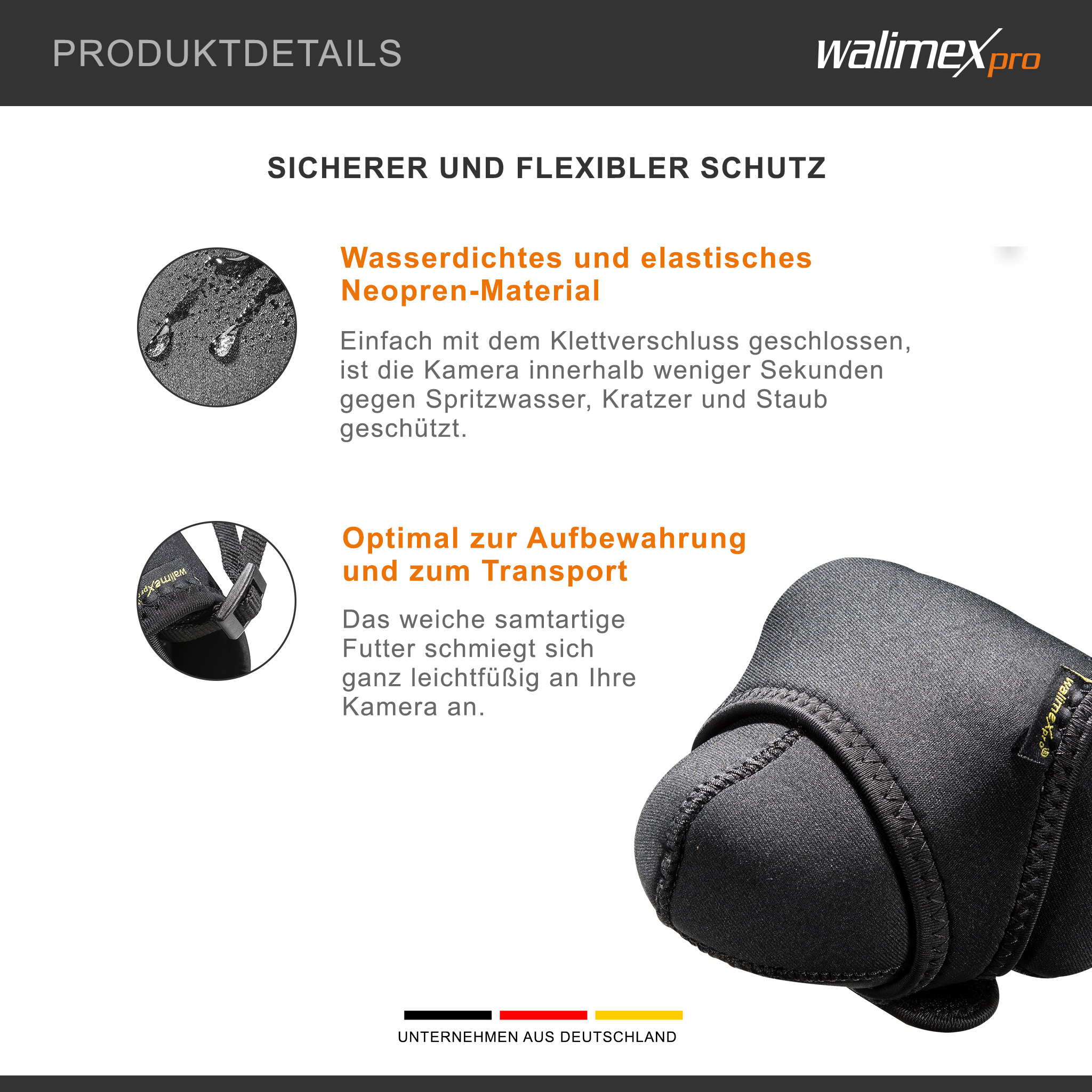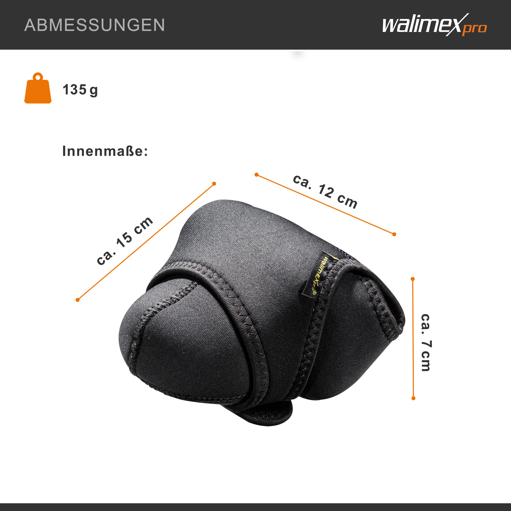 - Lieferumfang: Walimex Pro Neopren Kamera-Schutzhülle. Breite (außen) 150mm, Breite (innen) 120mm, Höhe (außen) 70mm, Länge (außen) 270mm, Länge (innen) 150mm