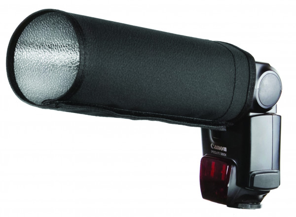 Microbox und Portaflex werden direkt an Aufsteckblitzgeräten angebracht.Die Befestigung von Portaflex ist einfach: benutzen Sie den Klettverschluss, und spannen sie diesen fest um das Aufsteckblitzgerät, um den Portaflex sicher zu befestigen.