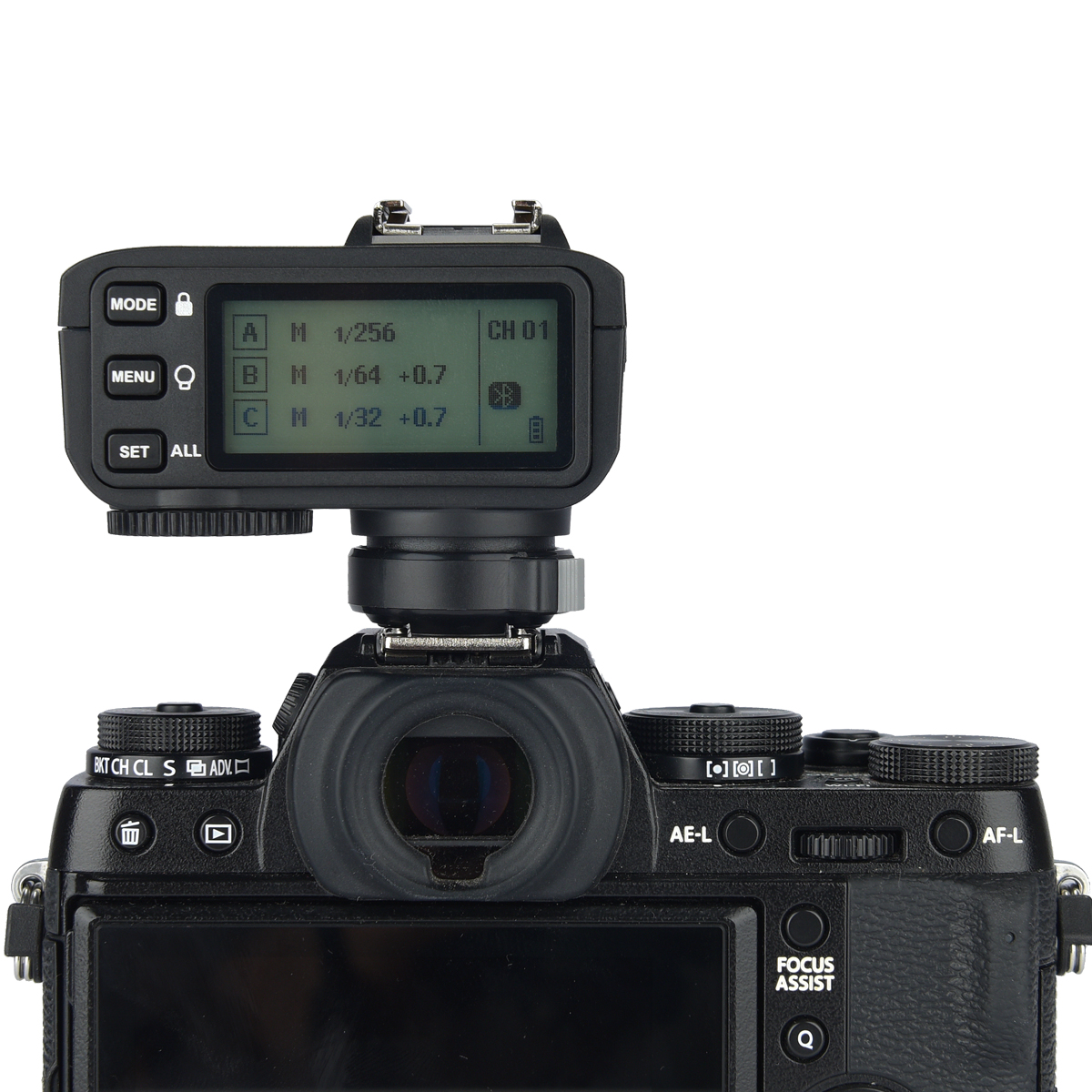 • Der Transmitter X2T ist in verschiedenen Versionen für Canon, Nikon, Sony, Fujifilm, Olympus/Panasonic und Pentax erhältlich.