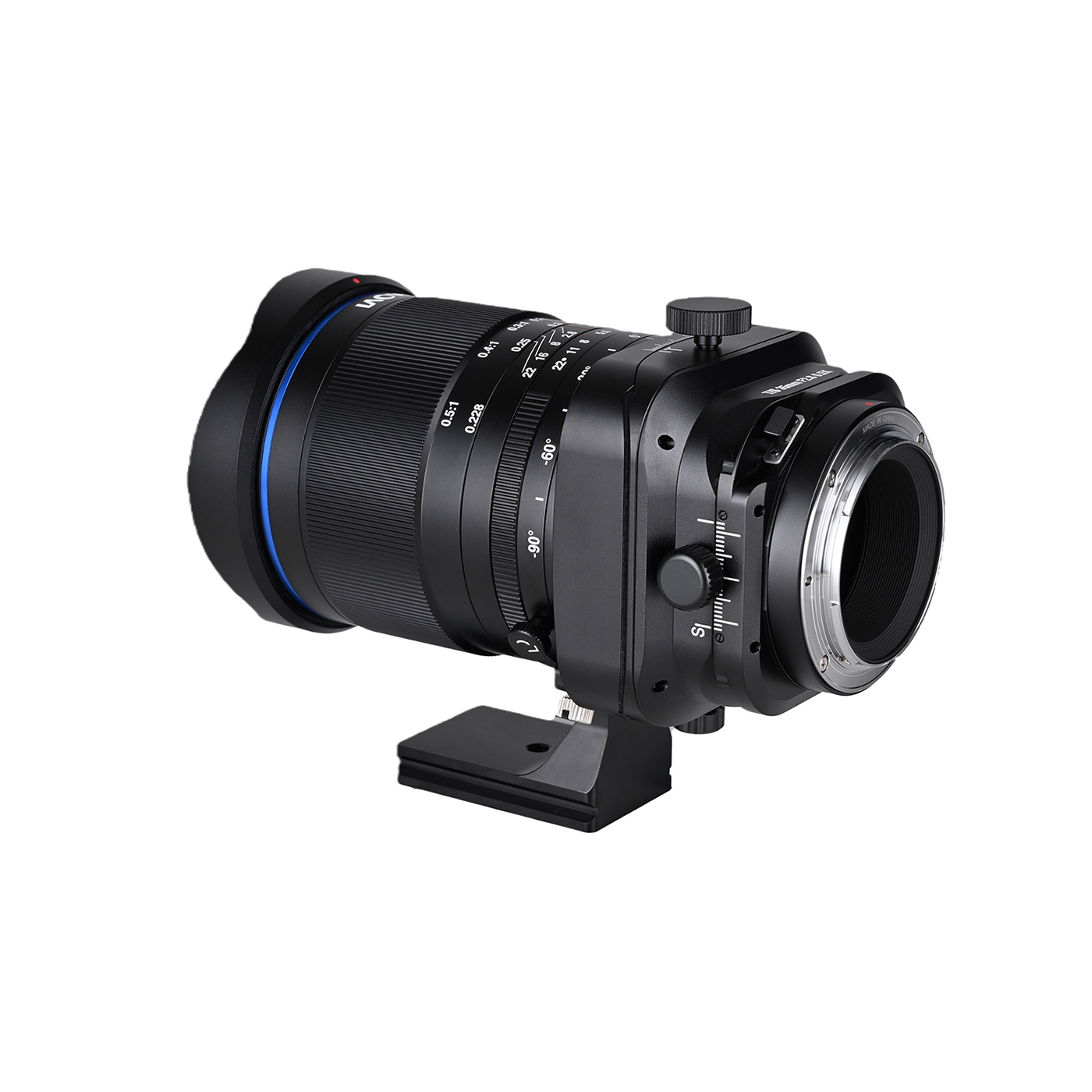 Das Metallgehäuse steht für Stabilität und professionelle Handhabung. Zwei unabhängige Rotationsmechanismen erhöhen die Flexibilität: Die Anschluss-Rotation lässt sich um 360° drehen und rastet alle 15° ein. Das Objektiv kann an der Arca-Swiss-kompatiblen Stativschelle stufenlos um 360° gedreht und fixiert werden. Ein 77mm Filtergewinde ermöglicht den Einsatz gängiger Filter.