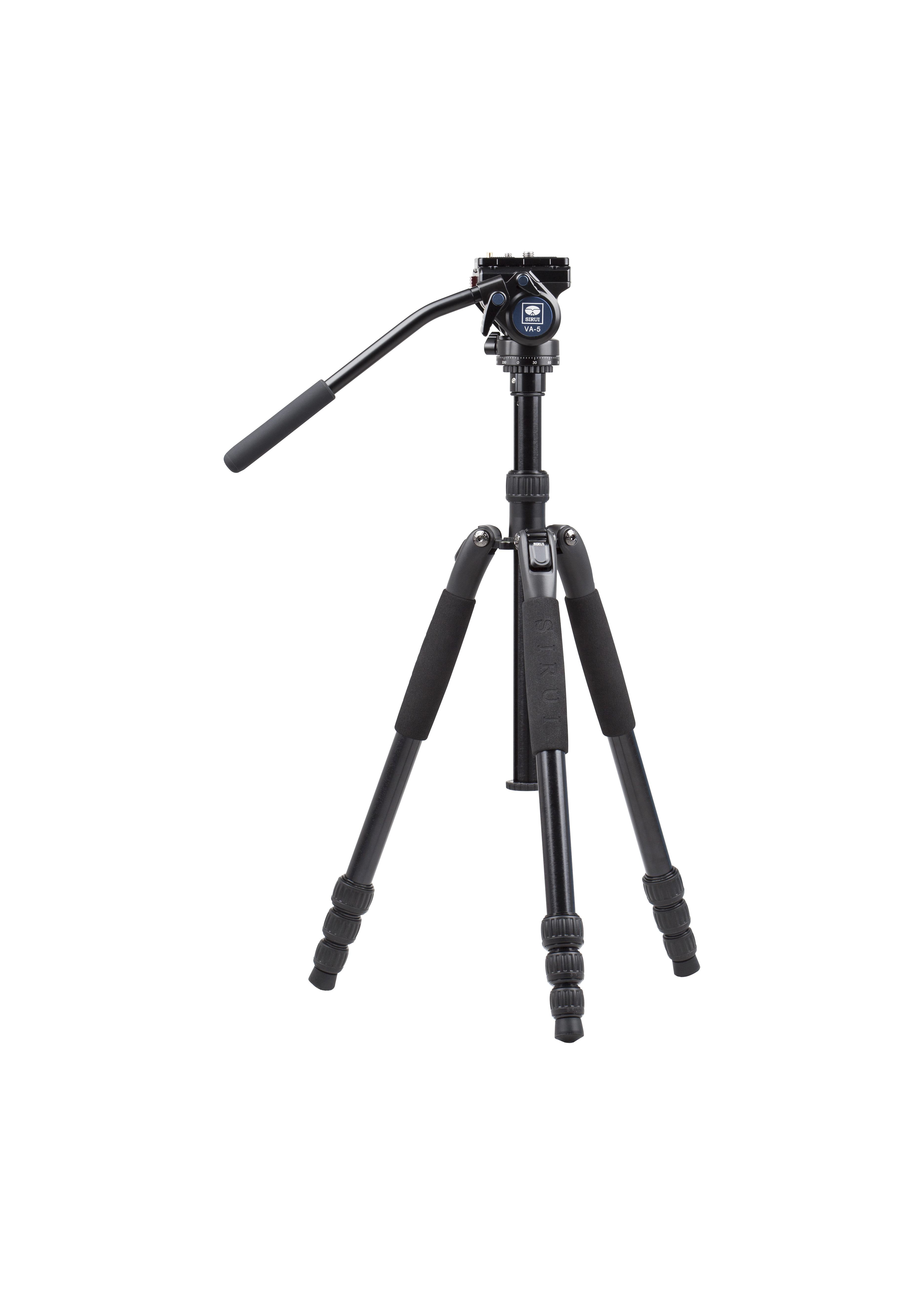Der VA-5X Fluid-Videoneigekopf ist aus einer hochwertigen Aluminiumlegierung gefertigt, die sowohl für ihre Robustheit als auch für ihr geringes Gewicht bekannt ist. Die matte, schwarze Oberfläche bietet nicht nur eine elegante Optik, sondern auch einen festen Griff. Der ergonomische Griff sorgt für eine komfortable Handhabung und präzise Kontrolle über Ihre Kameraausrichtung.