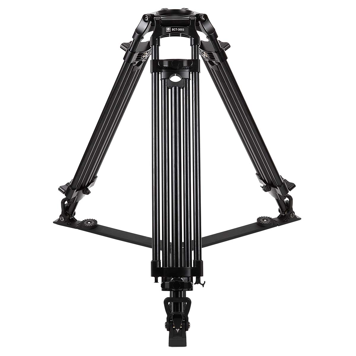 Die Doppelrohrbeine, die Doppelspikes, die verstellbare Bodenspinne und die äußerst komfortable Mittelspinne machen dieses Stativ unverzichtbar für professionelle Videoaufnahmen. Die Stativspinnen sind abnehmbar, können in der Breite individuell verstellt werden und geben dem Stativ die nötige Stabilität. Beim Arbeiten ohne Bodenspinne und auf empfindlichen Böden können die Doppelspikes mit Gummifüße überzogen werden. Besonders praktisch sind die großen Drehverschlüsse.