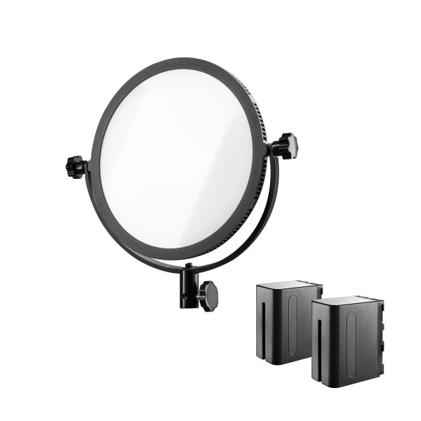 Die LED Round 300 kann per mitgeliefertem Netzteil oder mit 2 NP-F Akkus (ab NP-F 550/750 oder NP-F 960 oder stärker) betrieben werden. Durch die hochwertige Konstruktion und Ausführung ist diese hochmoderne LED Leuchte sehr energieeffizient und erwärmt sich nicht. Somit ist bei entsprechend leistungsfähigen Akkus leicht ein ganztägiger Betrieb per Akku möglich. Ein Dual Ladegeräte für NP-F Akkus ist bereits serienmäßig im Lieferumfang enthalten.