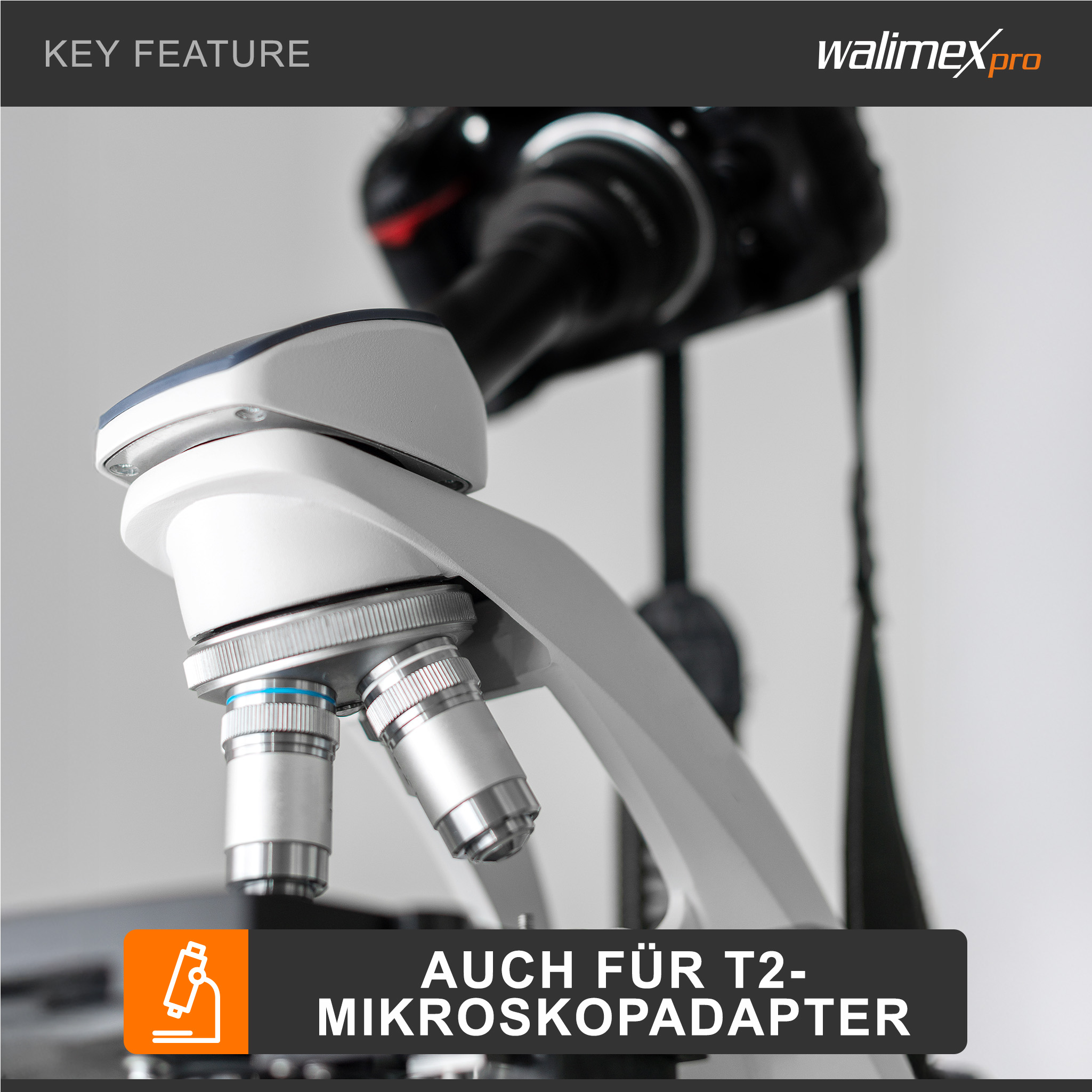 - [Flexible Einsatzmöglichkeiten] – Mit dem Adapter lassen sich nicht nur Kameraobjektive nutzen, sondern auch Zubehör wie Balgengeräte, Mikroskopadapter, Teleskope oder andere Vorsätze mit T2-Gewinde. Dank einfacher Handhabung wird der Adapter zunächst auf das Objektiv geschraubt und anschließend an der Kamera angebracht, so dass unkompliziertes Arbeiten mit Ihrer T2-Ausrüstung möglich ist
