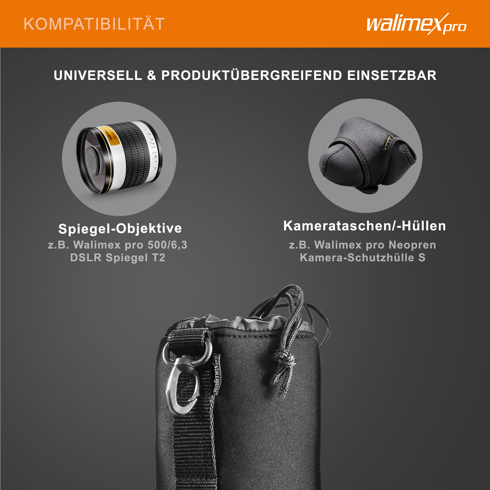 - [Schutz] – Der Objektivbeutel von Walimex bietet zuverlässigen Schutz für Ihr Kameraobjektiv. Dank dem robusten Neoprenmaterial werden Staub, Spritzwasser und leichte Stöße effektiv abgehalten, so dass Ihr fotografisches Objektiv sicher verwahrt bleibt. Dies macht den Objektivbeutel zu einem unverzichtbaren Teil Ihres Fotozubehörs im Studio oder unterwegs
