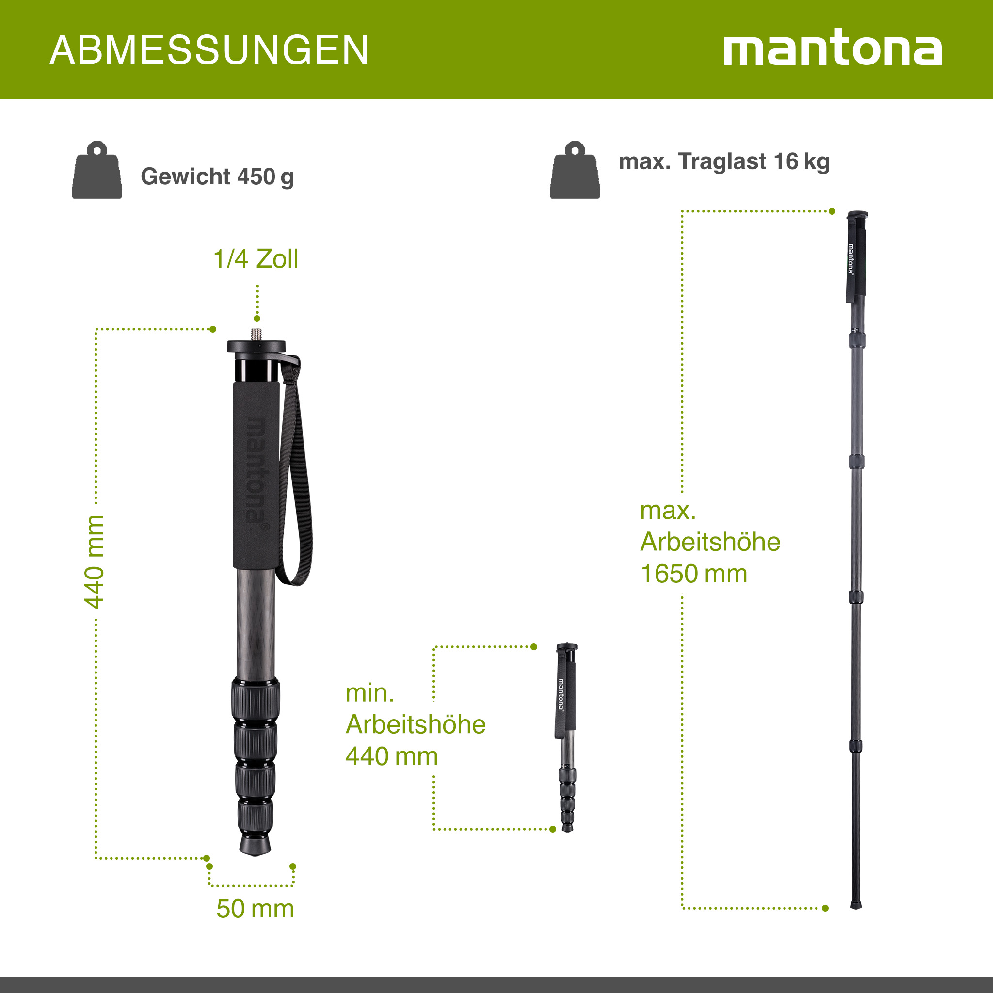 Weiterführende Links zu "Mantona Pro ONE 165C Carbon Einbeinstativ 165 cm"