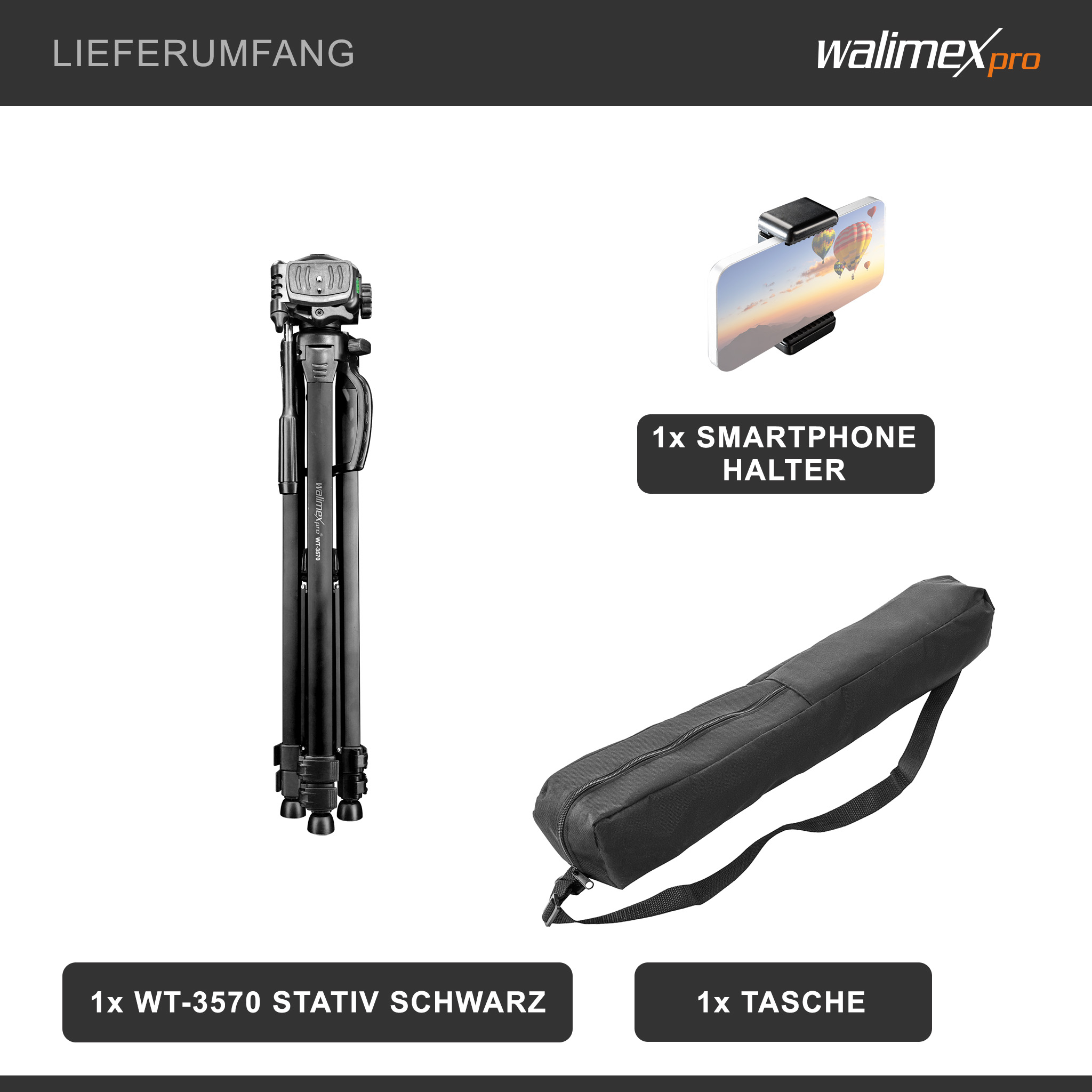 - 1 x Walimex WT-3570 Basic-Stativ schwarz