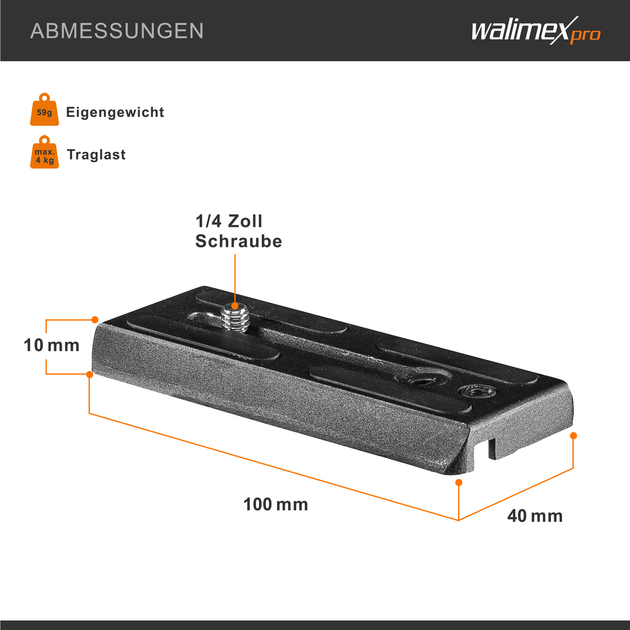 - Hochwertige Schnellwechselplatte für Videostativ Walimex pro Advanced 173 SH