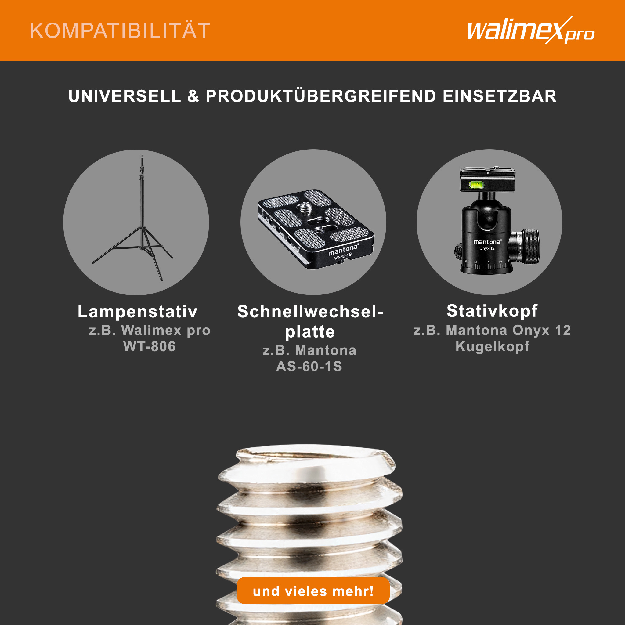 - [Vielseitigkeit] – Perfekt geeignet für Kameras, Kugelköpfe, Neiger, Balgengeräte, Blitze und mehr. Dank seiner universellen Passform ist der Adapter ein unverzichtbares Zubehör für Kamera-Stative und weitere Fotoequipment.