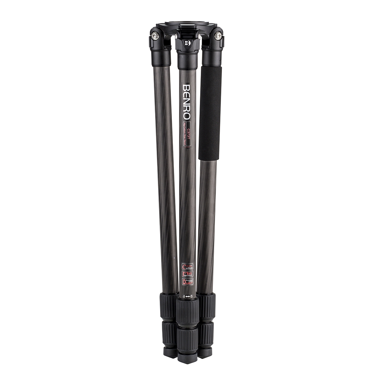Die 3er-Stufe, 3-teilige 8X-Carbon-Stativbeine verfügen über eine 75mm-Schale, drei Beinwinkel für unebenes Gelände und schnelle Flip-Beinschlösser.