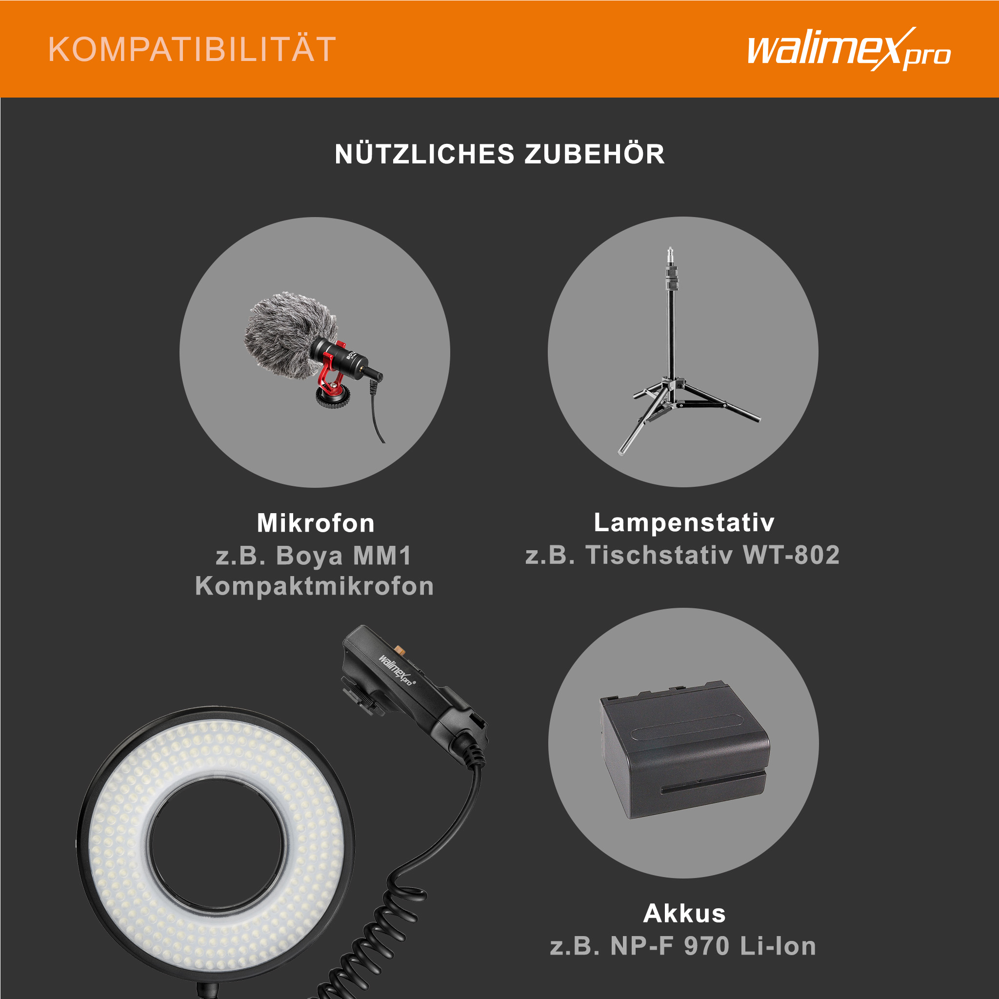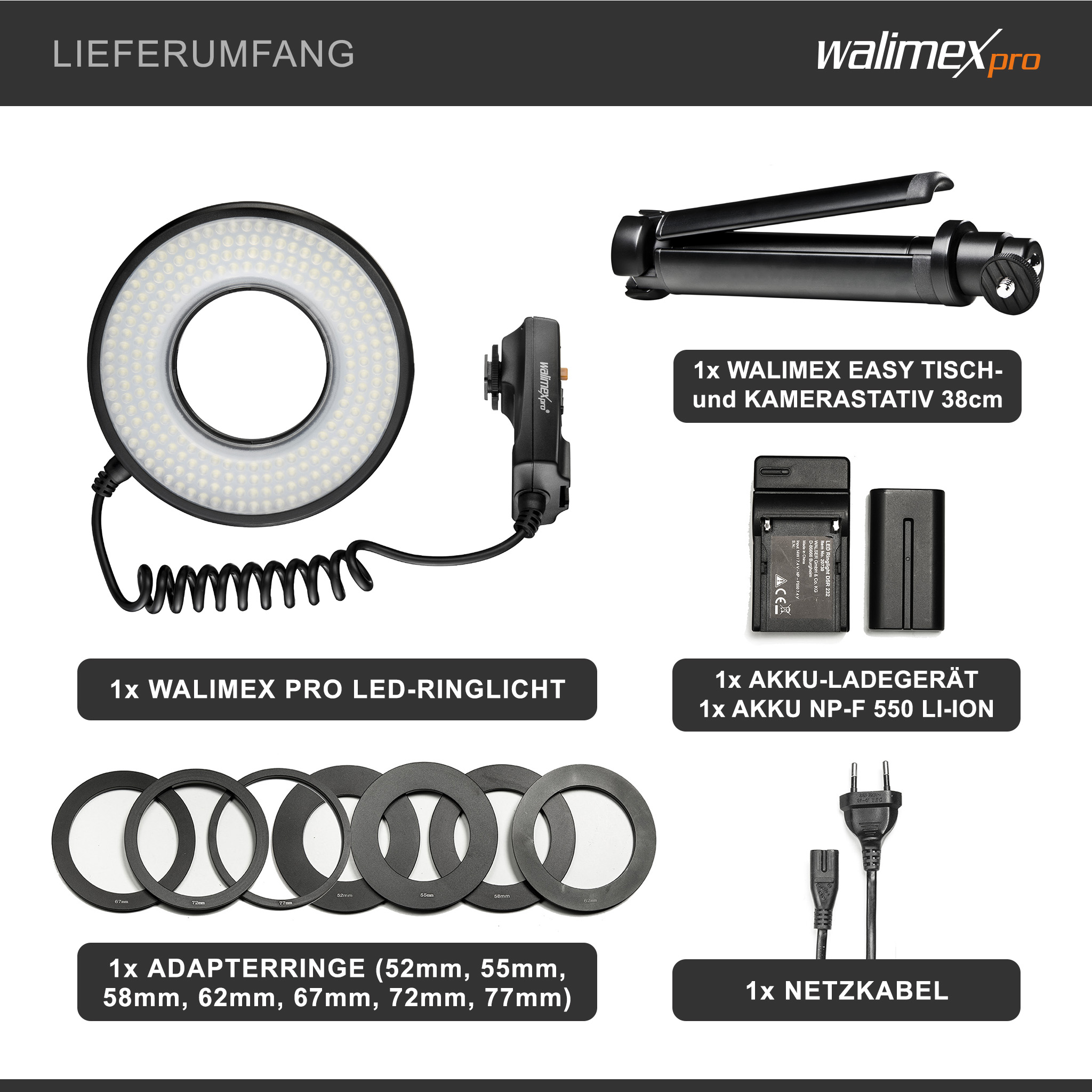 - 1x Walimex pro LED-Ringlicht