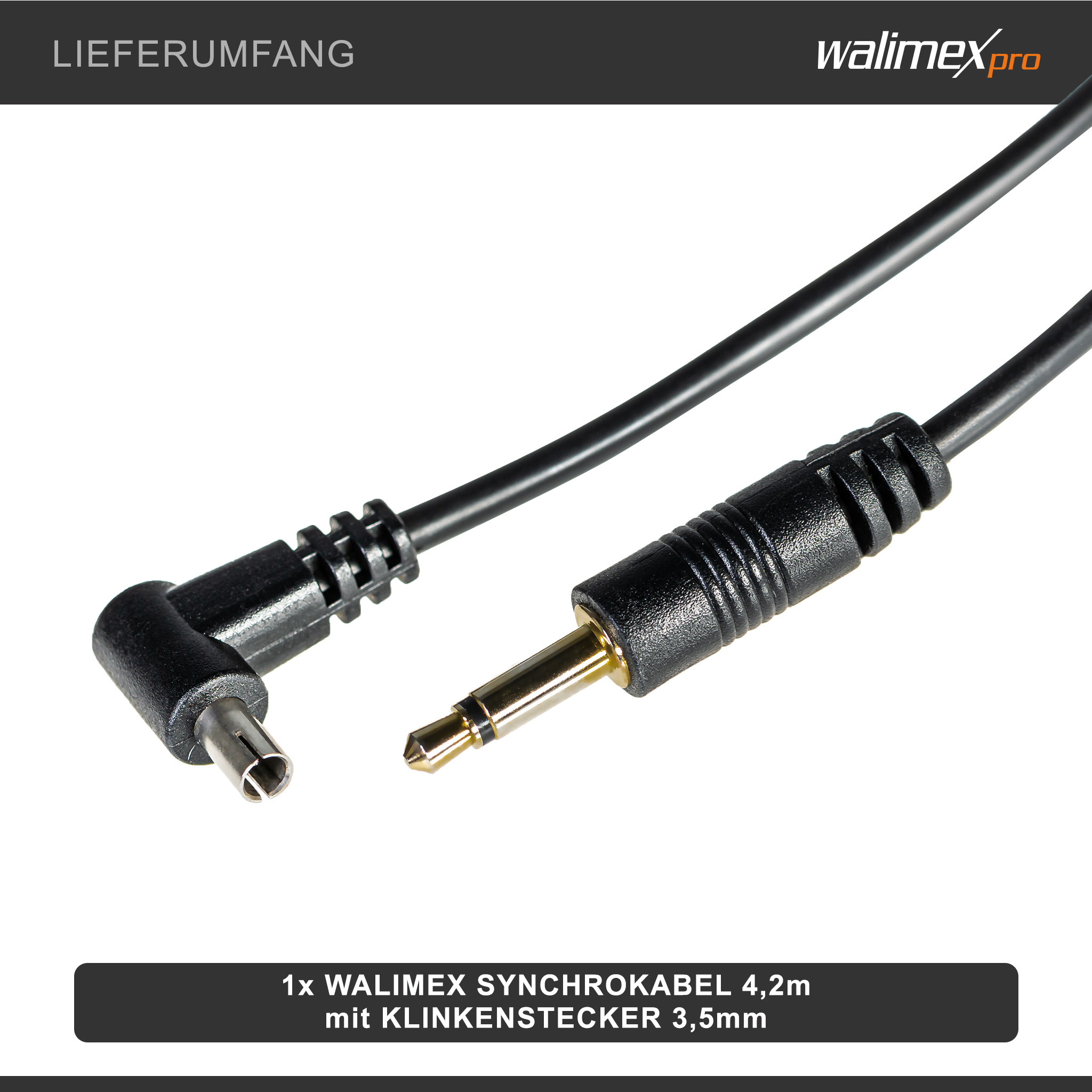 Walimex Synchrokabel 4,2 m, Klinkenstecker 3,5 mm [Kompatibilität] – Das Synchrokabel mit... mehr