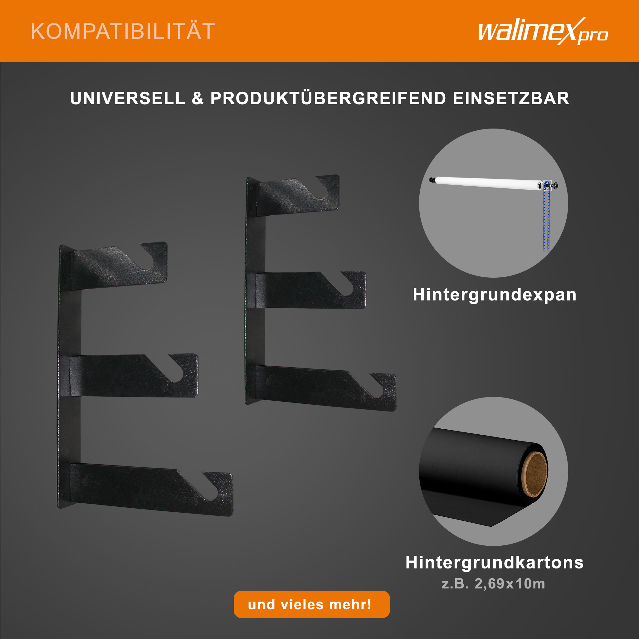- [Stabiles Fotografie-Zubehör im Set] – Das 2er-Set von Walimex überzeugt durch hohe Belastbarkeit, funktionale Gestaltung und professionelle Verarbeitung: Als Studiozubehör für Fotografen bietet es eine platzsparende Lösung für alle, die mit Leinwand, Fotoleinwand, Papierhintergrund oder anderem Studio-Hintergrund arbeiten