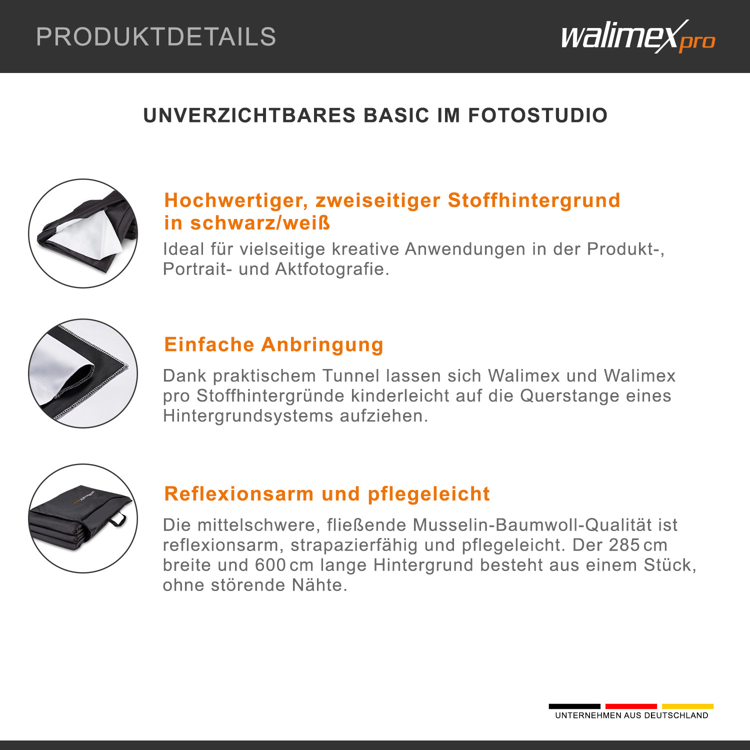 Walimex pro 2in1 Stoffhintergrund 2,85x6m, S/W [Anwendungsvielfalt] – Ideal für... mehr