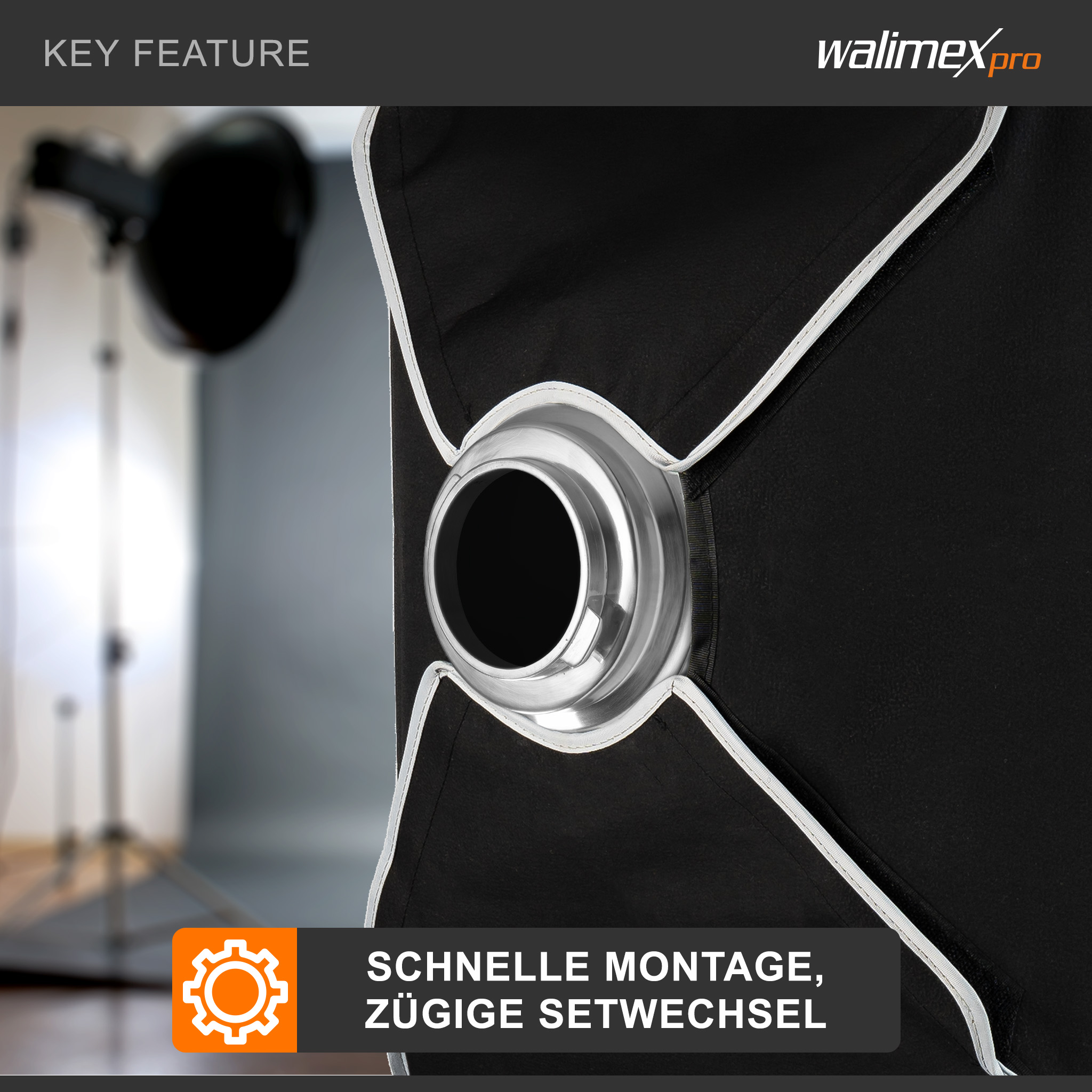 Hohe Betriebssicherheit dank der Metallkonstruktion. präzise Ausrichtung für gleichmäßiges Softbox-Licht. kompatibel mit Setups, in denen Grid-Softbox, Softbox-Studioleuchte oder Lichtformer-Studioblitz eingesetzt werden. So entstehen konsistente Ergebnisse mit klarer, reproduzierbarer Lichtqualität.