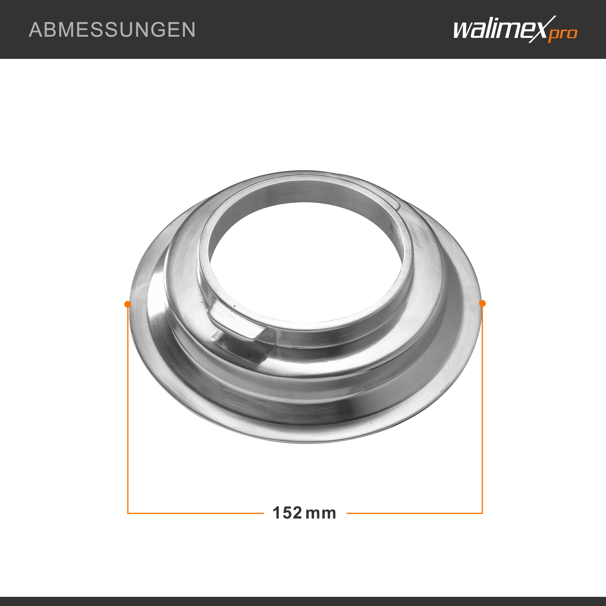 Der Softboxadapter kompatibel mit Broncolor Pulso der Marke Walimex ist ein präziser Lichtformer-Adapter für die sichere Verbindung zwischen Softbox und Blitzgerät. Gefertigt aus Metall und dimensioniert mit 152 × 152 × 47 mm sowie Außendurchmesser 15,2 cm überzeugt er durch stabile Passform und langlebige Zuverlässigkeit, dank des robusten Aufbaus auch bei häufigem Studioeinsatz.