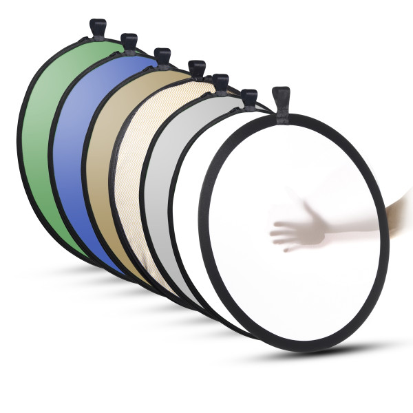 - Lieferumfang: 1x walimex 7in1 Faltreflektor Set, Ø107cm