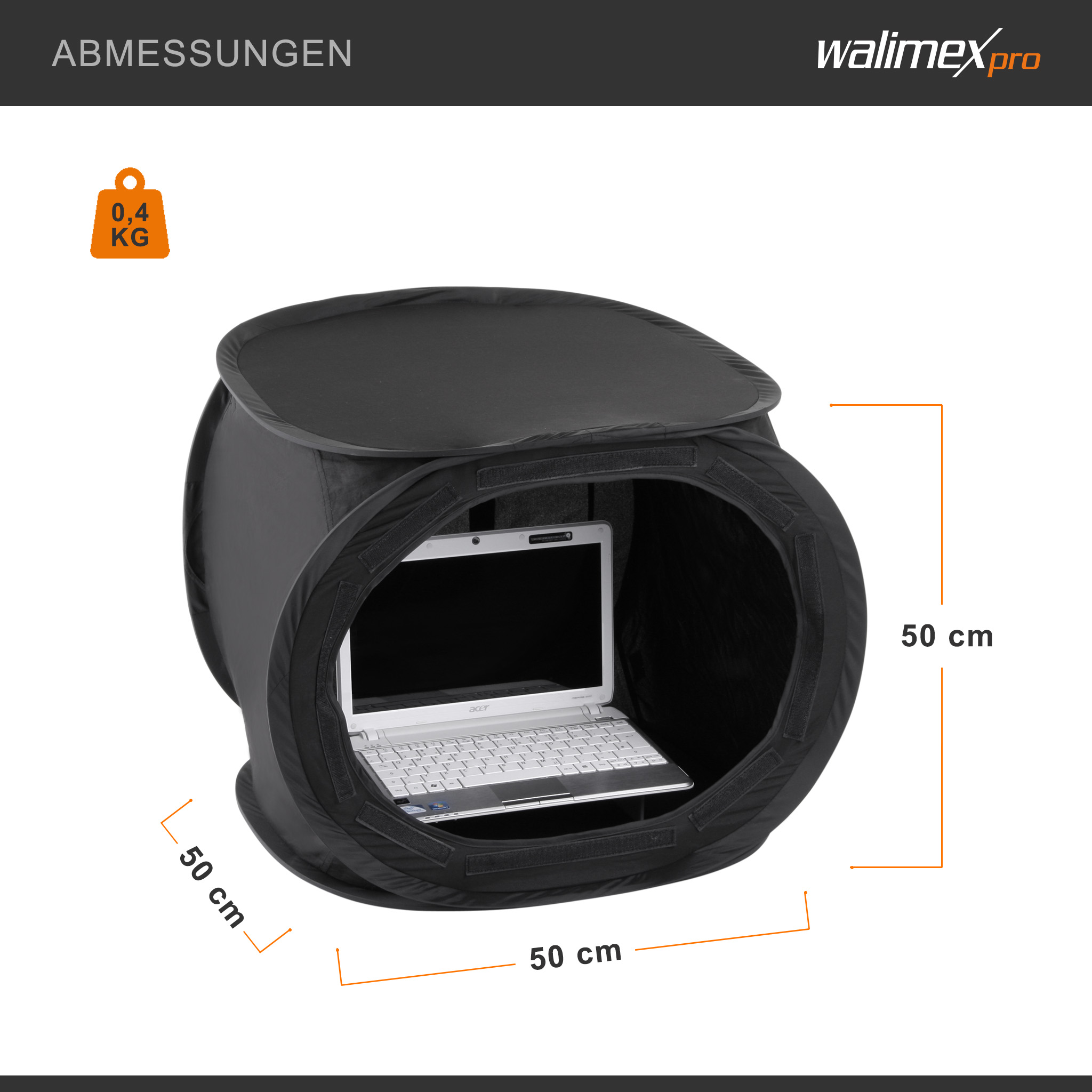 Walimex Pop-Up Laptop-Zelt 50x50x50cm super black