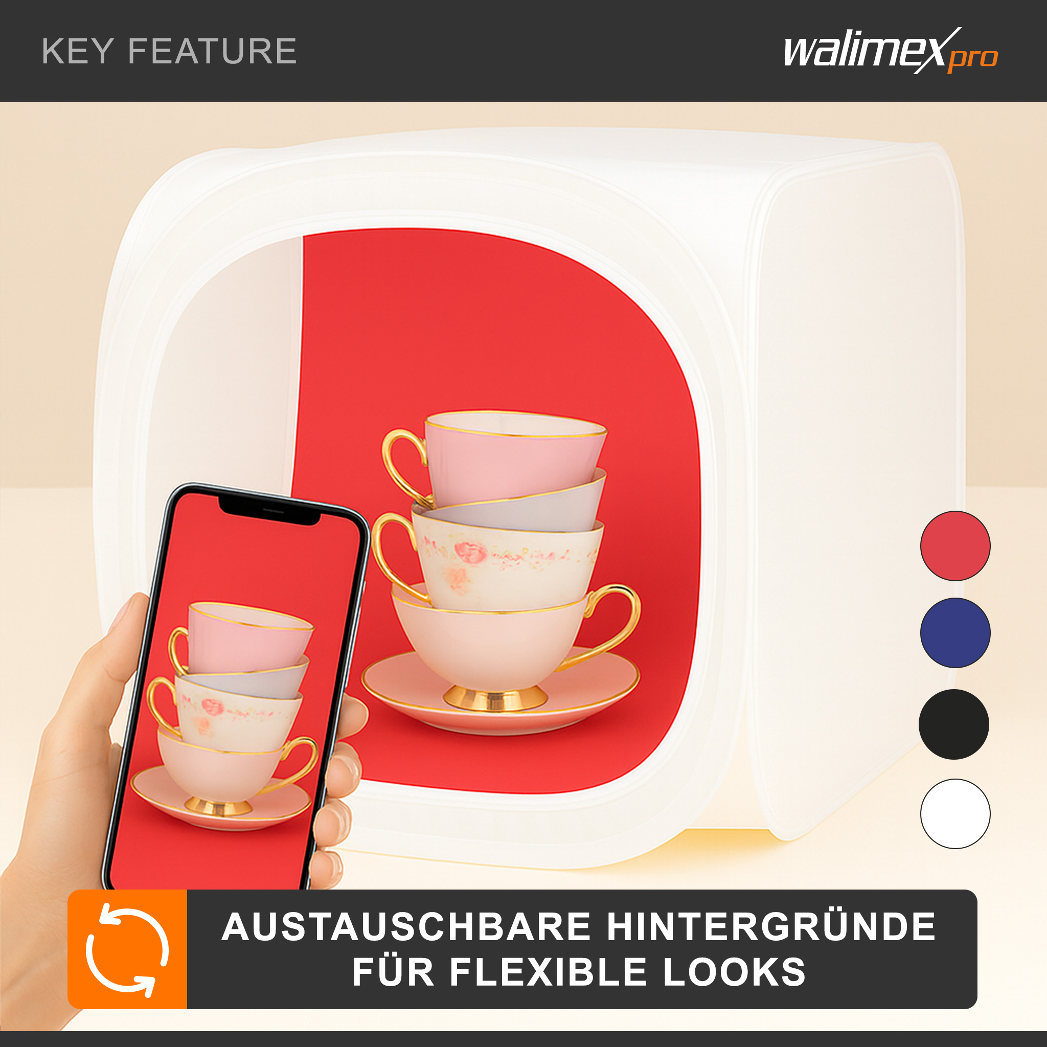 Walimex pro Pop-Up Lichtwürfel 75x75x75cm Einsteigerset Produktfotografie ideal für... mehr