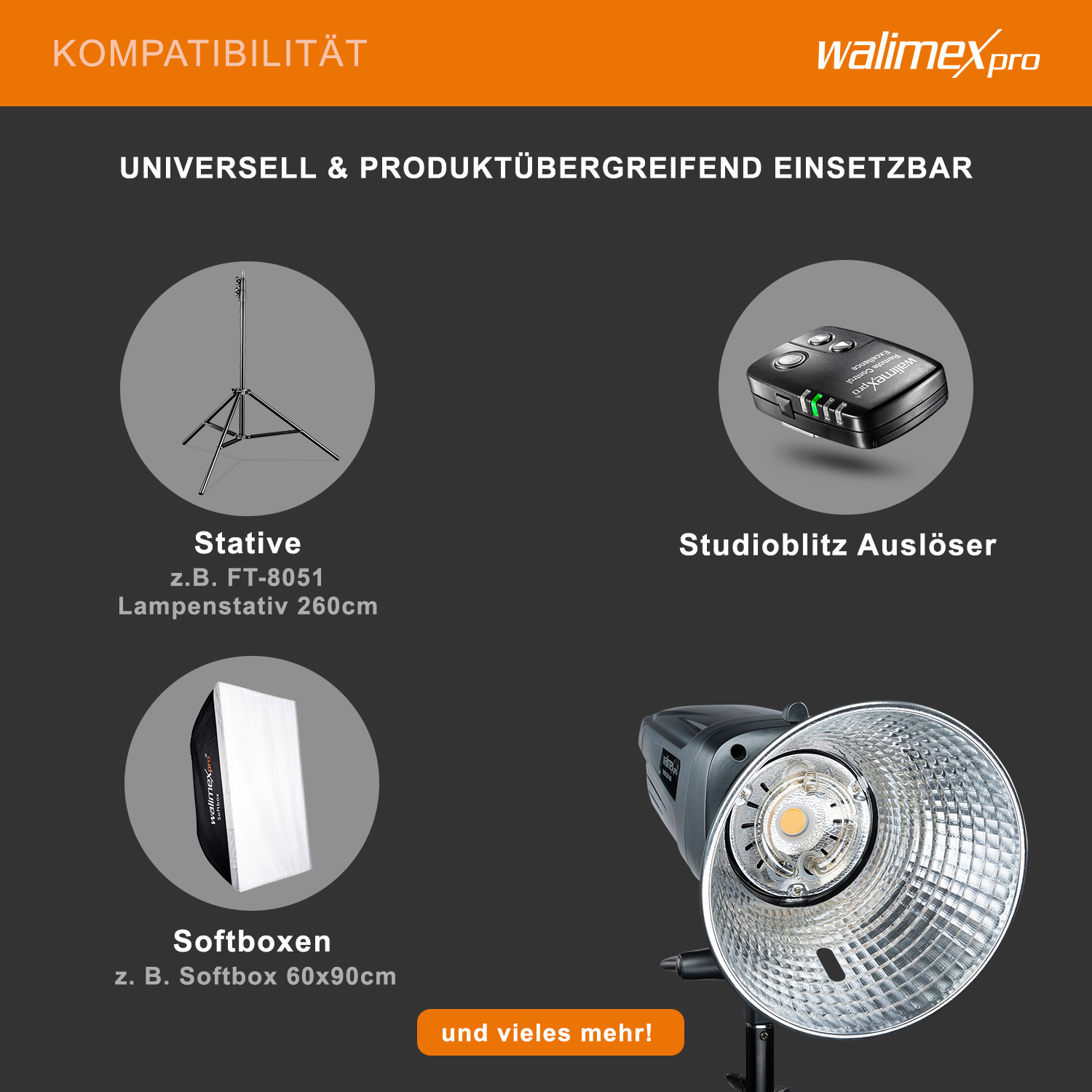 - [Kompatibel und benutzerfreundlich] - Der Bowens- bzw. Walimex pro Anschluss sorgt für hohe Kompatibilität mit zahlreichen Lichtformern während das übersichtliche Bedienpanel und die Möglichkeit zur Fernsteuerung per Funkfernbedienung eine intuitive Handhabung garantieren.