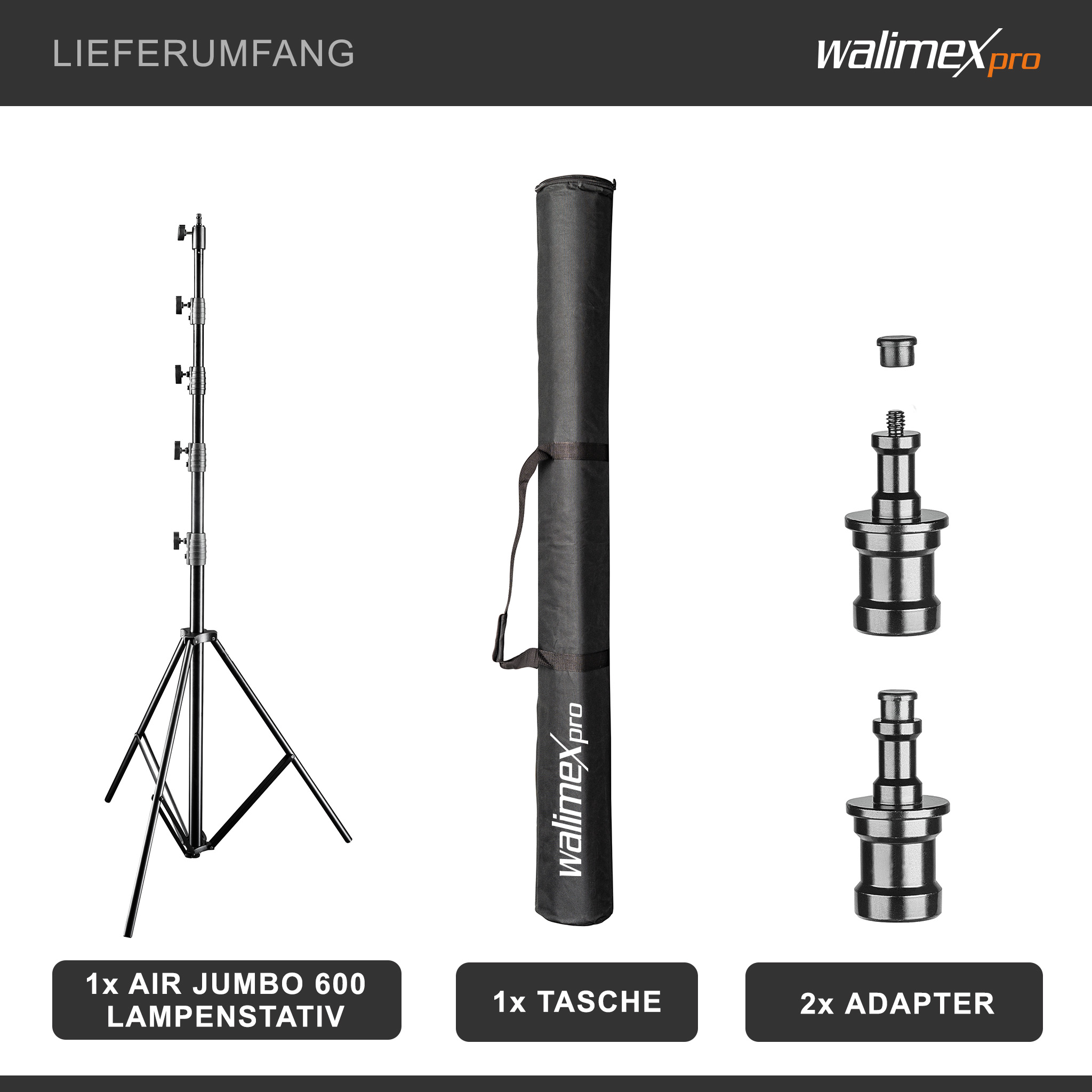- 1 x Walimex pro Lampenstativ Jumbo AIR 600 cm