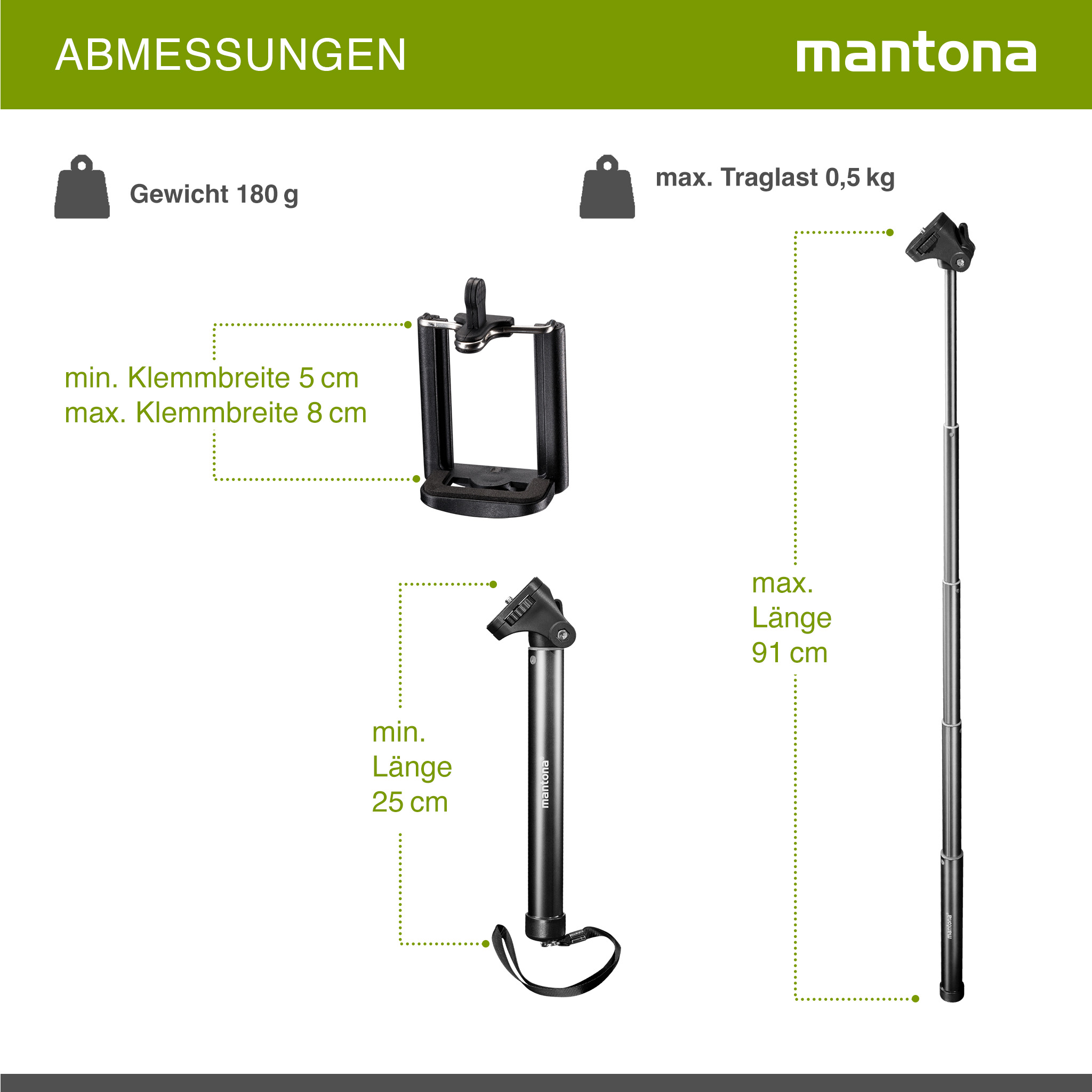 - [Handstativ für Smartphones und kompatibel mit GoPro] – Ideal für Selfies, Vlogs und Videoaufnahmen mit größerem Abstand zum Motiv dank stufenlosem Längenauszug und flexibler Arretierung des Stativkopfes für eine schnelle Anpassung der Perspektive beim Fotografieren und Filmen mit Smartphones, auch kompatibel mit GoPro