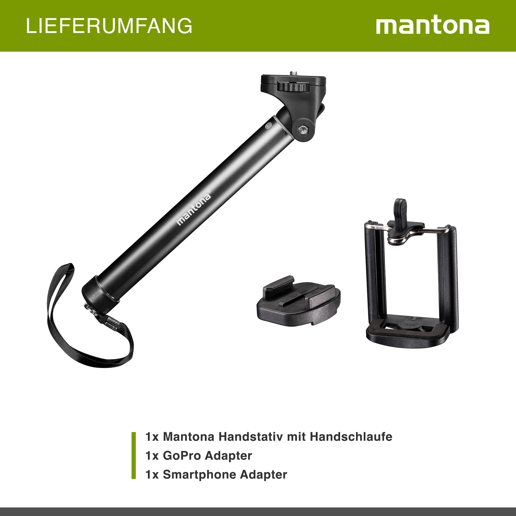 Mantona Handstativ Selfy schwarz für GoPro u. a.