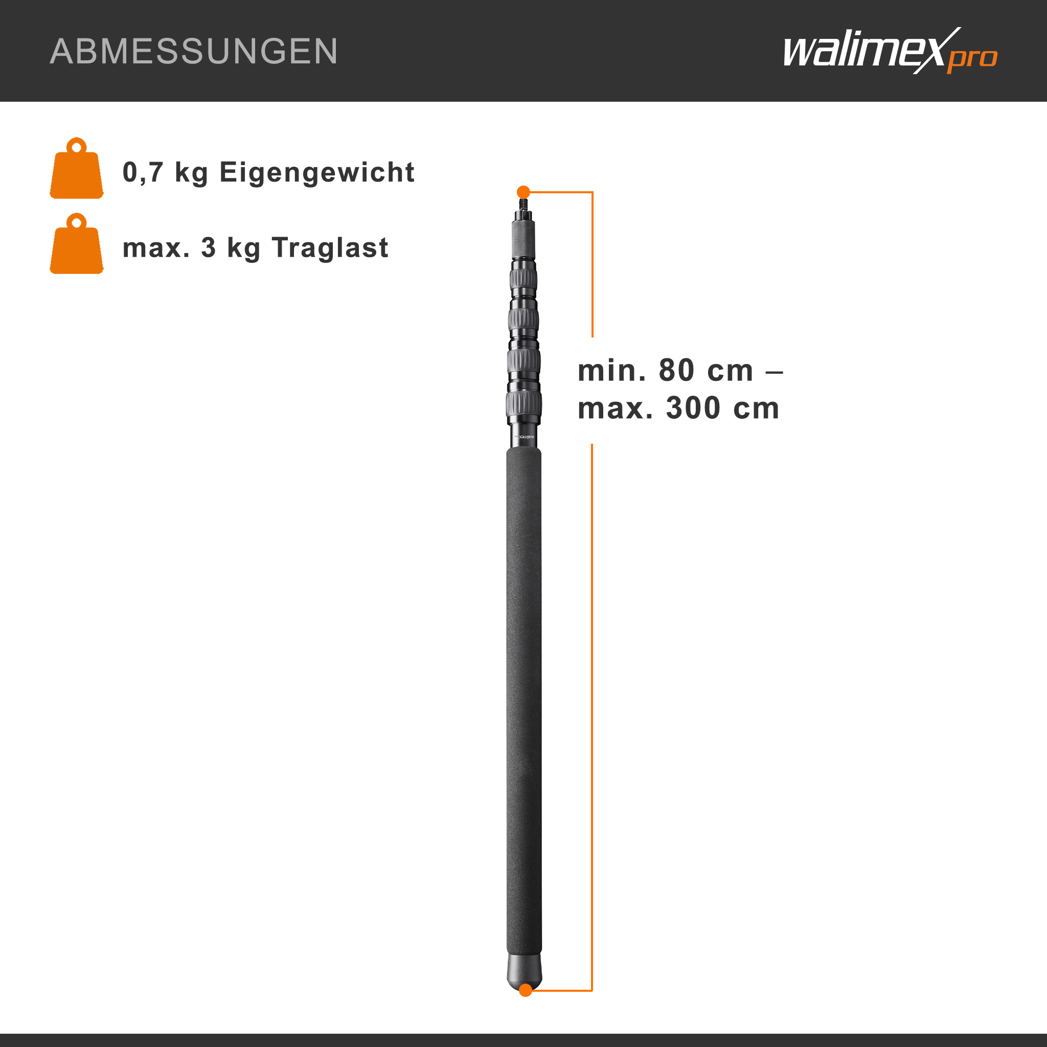 - [Maximale Reichweite] – Verlängerungsstange (Extension Rod) von Walimex pro für professionelle Audioaufnahmen mit einer maximalen Länge von 3 m, ideal für Reportagen, Interviews und Set-Shootings, bei denen das Mikrofon nicht im Bild erscheinen soll, und kompatibel mit gängigem Kamerazubehör für eine präzise Tonführung