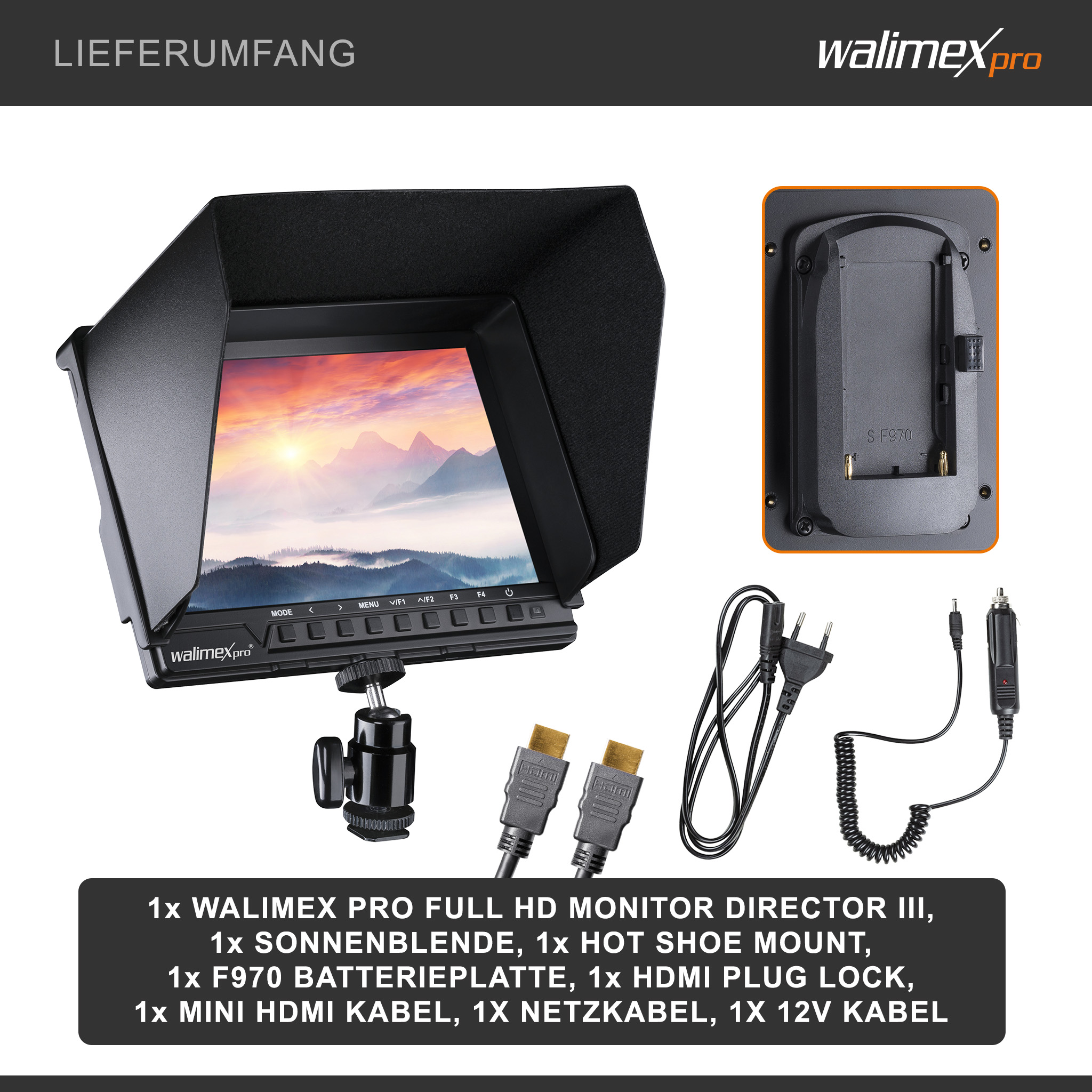 Der Walimex pro Director III erleichtert die Beurteilung von Schärfe und Belichtung am Set. Als externer Monitor für DSLR-, CSC-Kameras und Camcorder eignet er sich zudem als zweiter Bildschirm im Fotostudio und Fotoatelier. Full-HD-Auflösung 1920 × 1200 unterstützt präzises Arbeiten bei Foto und Video.